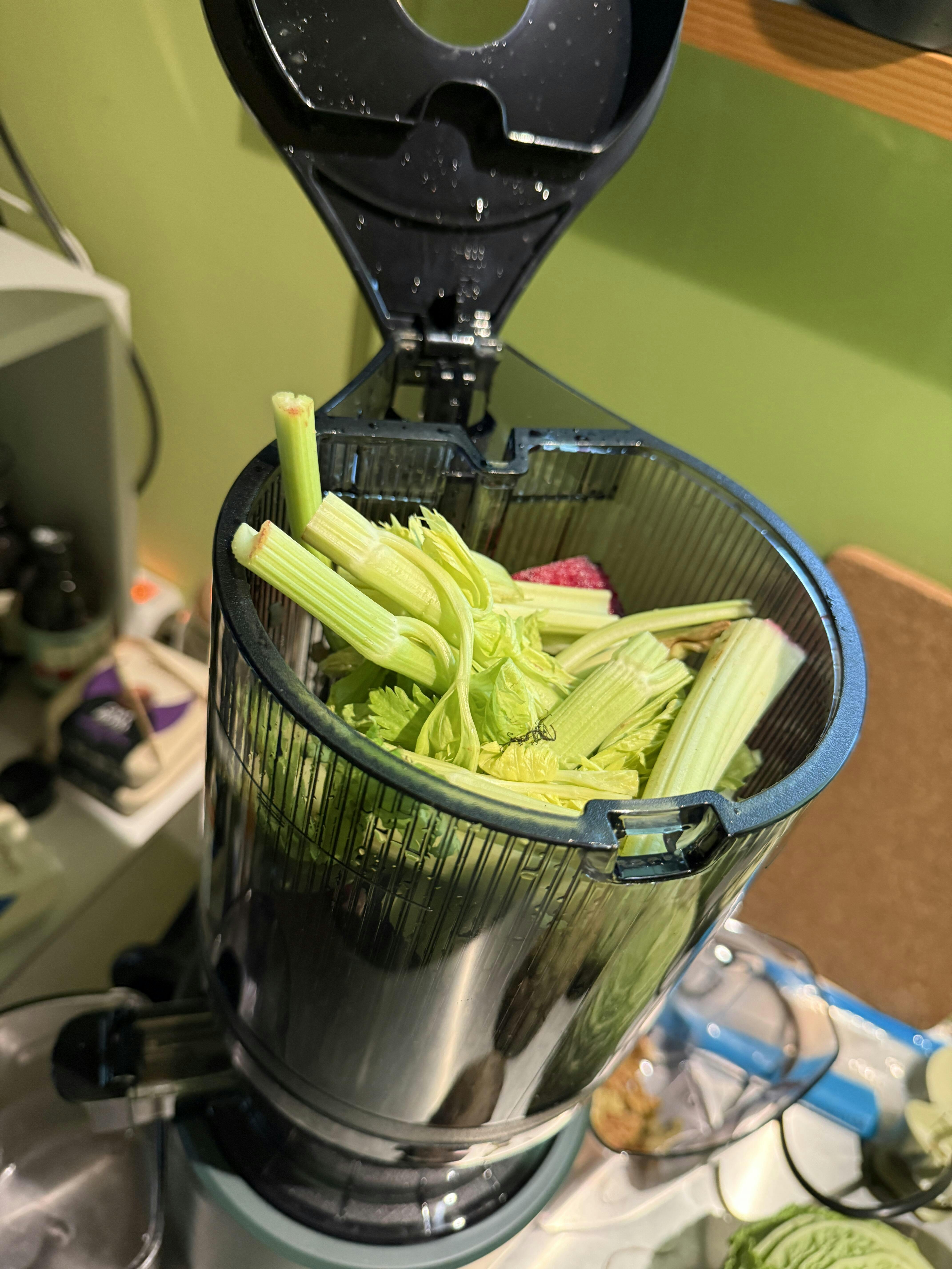 Vor gut einem Jahr habe ich mir einen sehr günstigen SlowJuicer gekauft. Nach kurzer Zeit war mir das entsaften zu mühsam.
