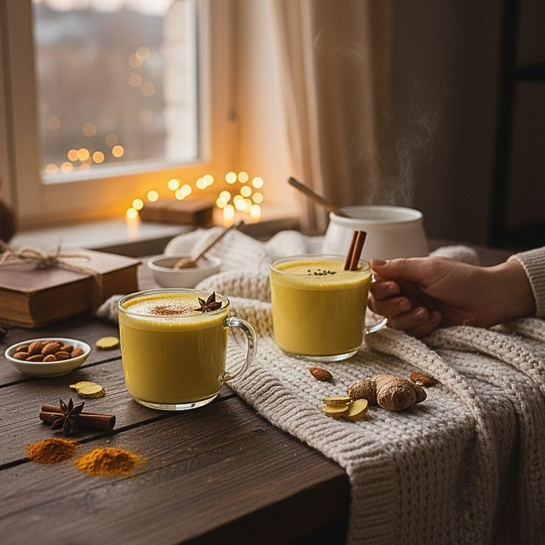 Wärme dich von innen mit Gold! Kurkuma, Ingwer & pflanzliche Milch – deine perfekte Abendroutine.