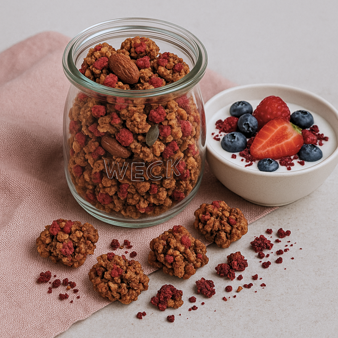 Nach dem Saftpressen bleibt Trester übrig, perfekt für ein crunchy Granola!
